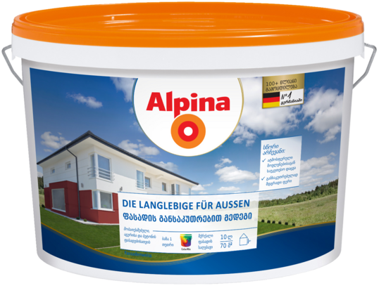 On plaster, brick and concrete Matte water-repellent dispersion paint with unlimited choice of colors for individual decoration of your facade. The product provides very good coverage and long-term color stability. Effectively protects against wind and atmospheric influences - for durable plaster, brick and concrete facades. Precipitation-resistant Water-soluble and environmentally friendly Easy to apply Good protection against rain High diffusivity, class V1 according to DIN EN 1062